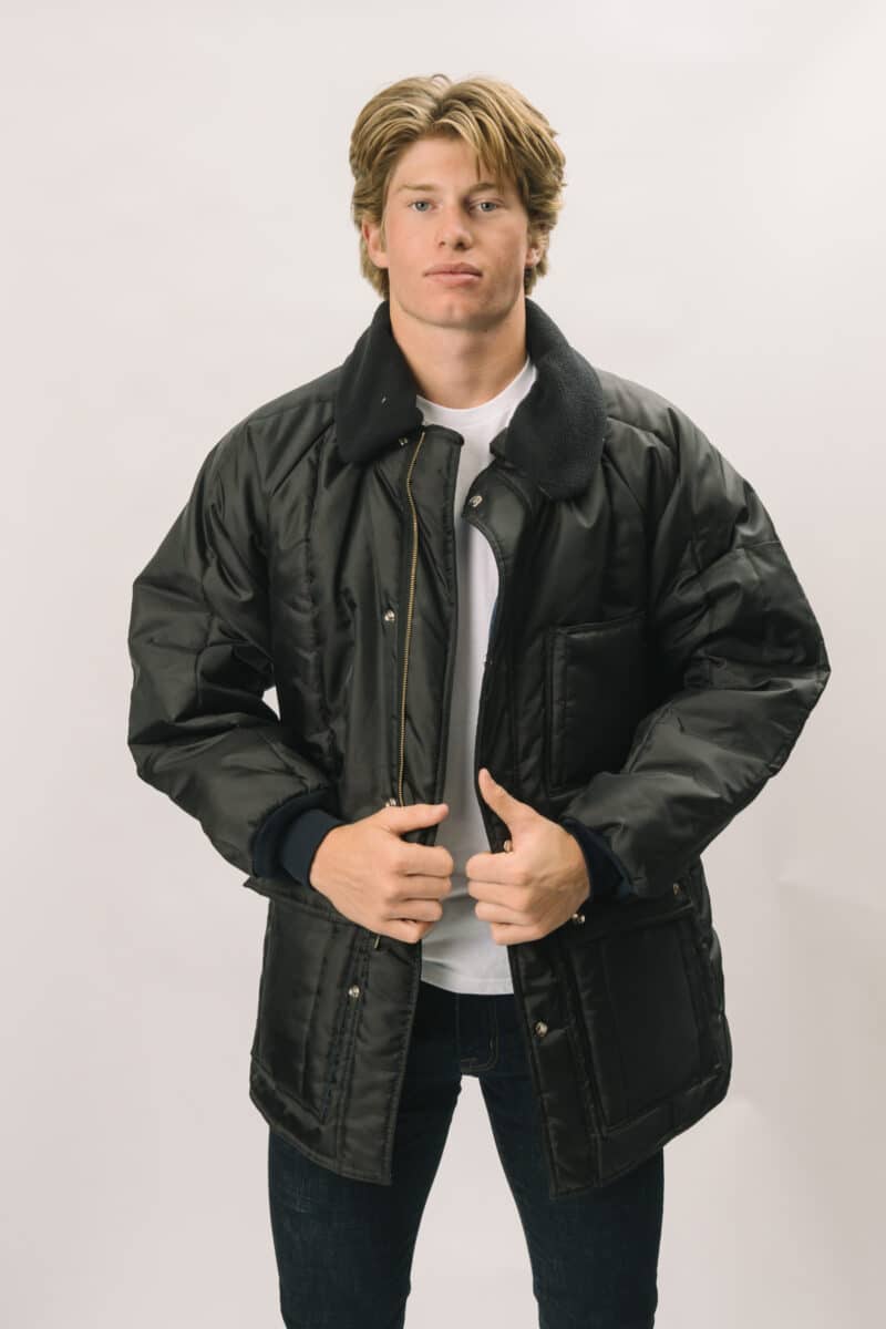 From Dickson Industries, the DI-202 Bering Jacket is a great fit for winter weather working conditions. 100% 8-ounce, 200 Denier nylon on both the interior and exterior of the jacket with SR100g 62″ quilting keeps users warm, while the jacket’s specially constructed features provide added protection and adjustability. Additional features include binding on the bottom hem, a knit collar and 3″ cuffs, two exterior lower pockets and one exterior breast pocket, 4 military-grade snaps, and a reinforced YKK zipper. 100% USA-made. Available in Navy only.